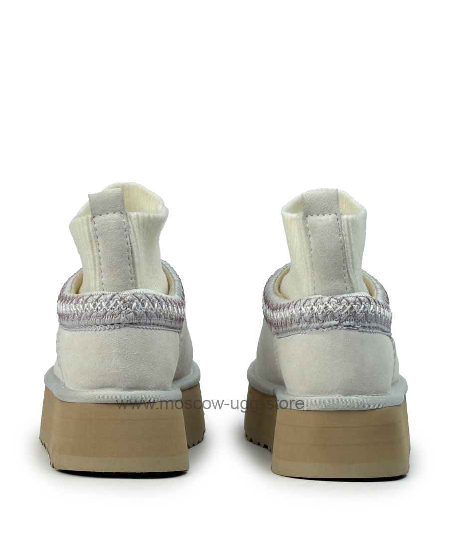 Мокасины UGG TAZZ KNIT белого цвета с трикотажным верхом сочетают в себе элегантный дизайн и удобство UGG. Верх обуви изготовлен из прочной замши с трикотажным носочком. Внутренняя часть выполнена из мягкой овчины, которая обеспечивает комфорт и тепло, а так же подавляет регуляцию температуры, что позволяет ногам чувствовать себя комфортно в любых температурных условиях. За счёт платформы мокасины имеют преимущество добавленной высоты, что создает эффект длинных ног, а узорчатый текстильный кант придаст вашему образу более яркий и модный вид. Купить оригинальные мокасины UGG TAZZ KNIT можно на нашем сайте.